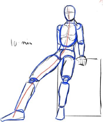 Ici on va commencer à faire intervenir quelques notions, de perspective si le corps est observé sur des angles exotiques, d'anatomie pour bien proportionner les différentes parties et on va devoir déformer certaines figures géométriques en fonction de la ligne d'action.