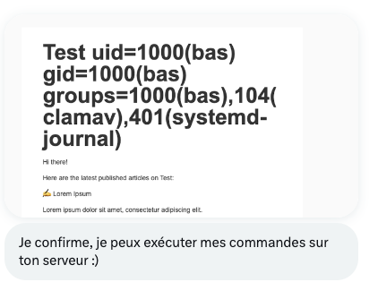 Ok, c'est donc la douche froide, il s'agit d'une RCE : Remote code execution.