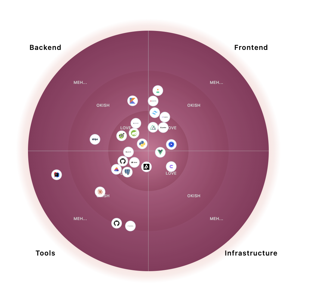Pour ma part, c'est la stack qui me rend productif aujourd'hui. Je tiendrai ce tech radar à jour sur mon blog si ça peut aider.