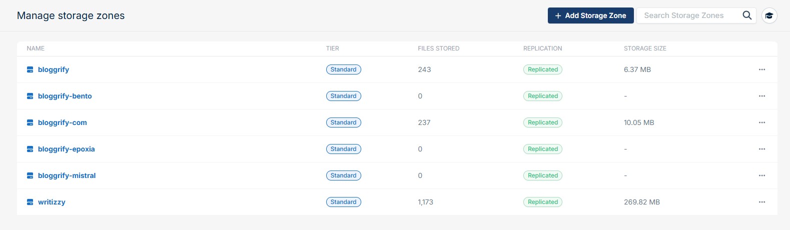 Evidemment la storage-zone-name est le nom de la zone défini dans Bunny, ici bloggrify pour mon cas.